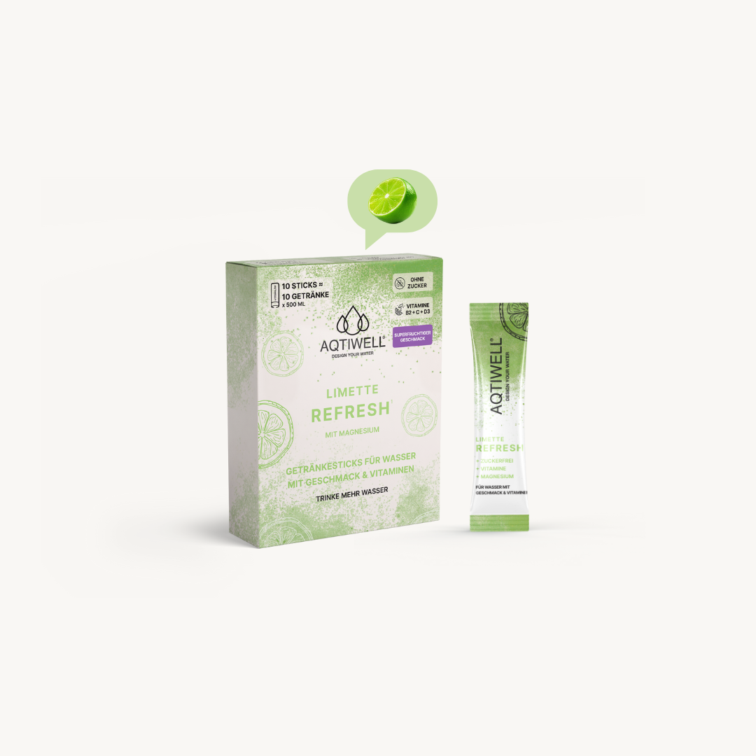 → 10 Aqtiwell REFRESH Sticks (=10 Getränke)