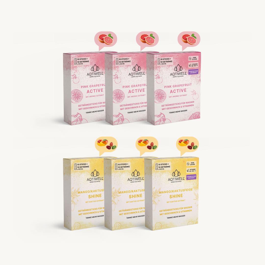 → 6 x 10 Aqtiwell Sticks (=60 Getränke)